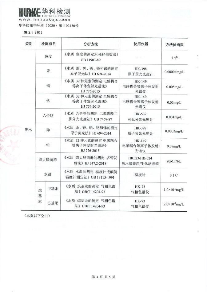 华科检测 2020年10月污水检测报告